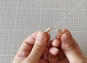 接下來我們準(zhǔn)備幾根皮筋,把皮筋穿過之前扎的四個(gè)小孔。