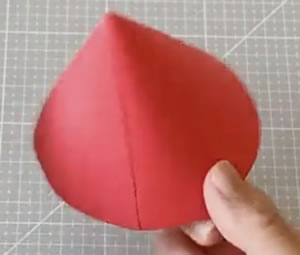 可以通過轉(zhuǎn)動(dòng)四邊有小木棒調(diào)節(jié)皮筋的松緊。太松的話可以多轉(zhuǎn)幾圈。一定要足夠緊后面起飛的效果才更理想。 接下來準(zhǔn)備一張紅紙,用圓規(guī)在上面畫出一個(gè)圈形,然后把圓剪下來。并在按下面的做法剪去其中的四分之一,再把圓折起來做成一個(gè)圓錐。中間可以用膠水或是雙面膠固定一下。